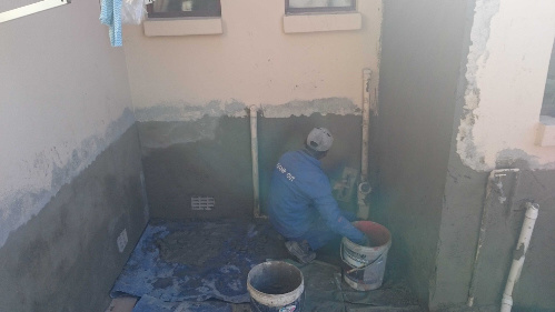 Second Stage– Replaster with a waterproof additive mixed into plaster.