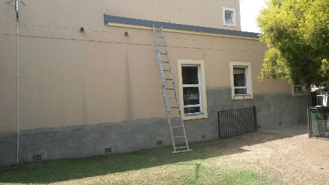 - Upper damp wall dries out through hydrative salt retardant Plaster coating. – View Diagram A3 For Rising Damp External